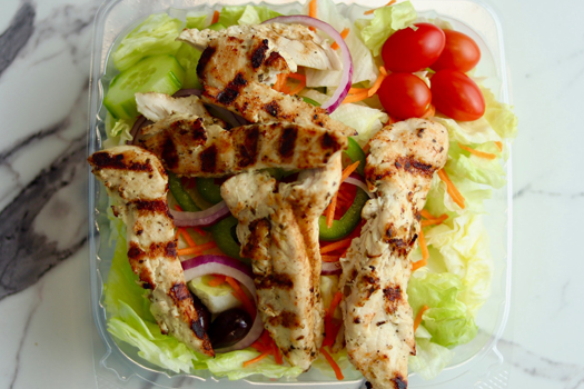 | Chicken Kabob Calzone Feta cheese, tomatoes, red onions & house dressing |